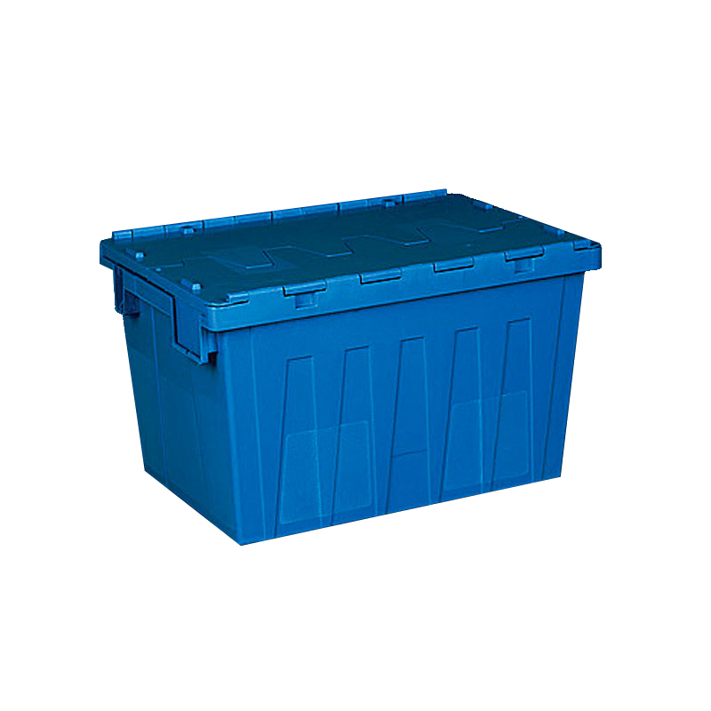 1. 物流箱為可插式、帶連體外翻箱蓋;把手搬運(yùn)舒服,空箱套入時(shí),把手在外。