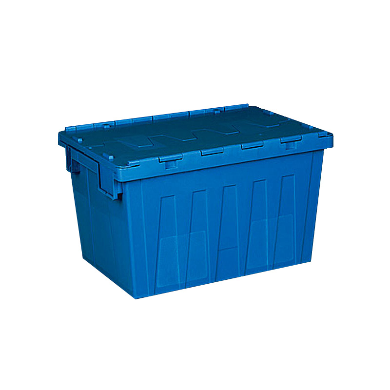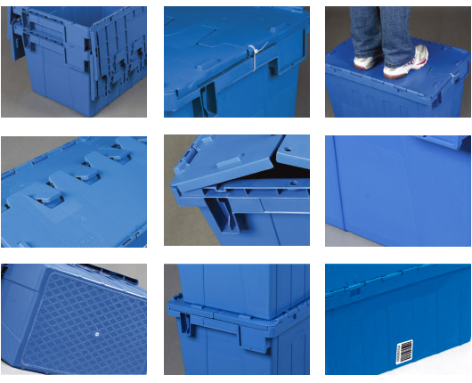 1. 物流箱為可插式、帶連體外翻箱蓋;把手搬運舒適,空箱套入時,把手在外。