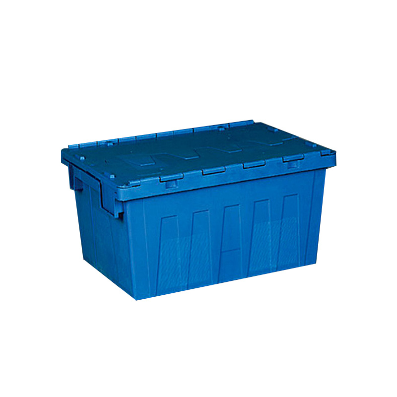 1. 物流箱為可插式、帶連體外翻箱蓋;把手搬運舒適,空箱套入時,把手在外。